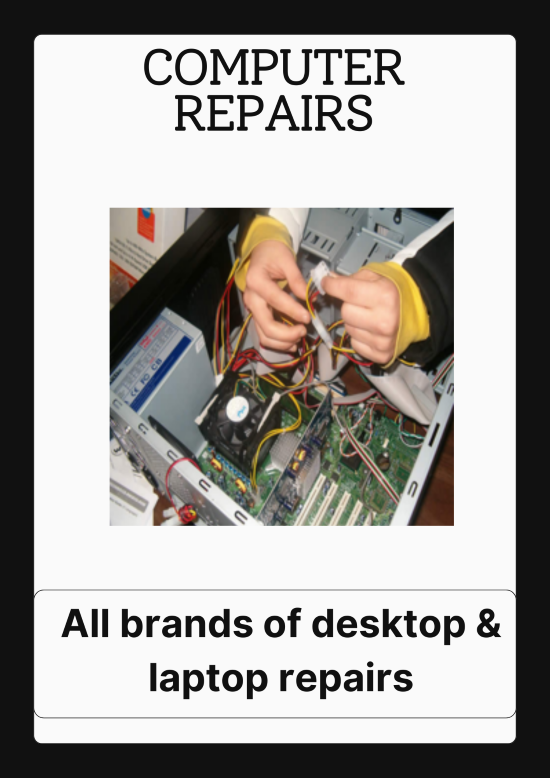 We offer comprehensive laptop and desktop repair services, tackling everything from hardware malfunctions and software glitches to virus removal and data recovery. Our expertise extends to computer parts fixing, ensuring components like motherboards, graphics cards, and hard drives are repaired or replaced efficiently. We also provide thorough servicing to keep your systems running smoothly, including performance optimization, cleaning, and preventative maintenance. Beyond repairs and servicing, we also specialize in computer sales, offering a range of new and used laptops and desktops to suit various needs and budgets.