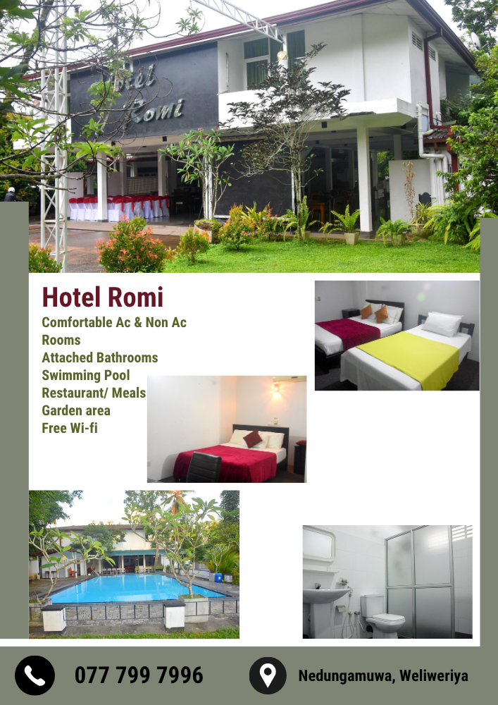 Hotel Romi in Rathupaswala, Gampaha, offers a comfortable retreat with both deluxe and budget rooms to suit your needs. It's an ideal spot for day outings, featuring a refreshing swimming pool and a spacious garden. Guests can also enjoy delicious meals at the on-site restaurant. Experience a relaxing stay in this village environment hotel.